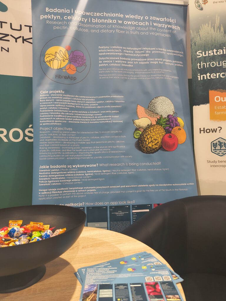 Również, w trakcie Targów zaprezentowaliśmy naszą aplikację FibreApp (https://fibreapp.pl/), która umożliwia dokonywanie zdrowszych wyborów żywieniowych poprzez dostarczanie niezbędnych informacji na temat wartości odżywczej i składu chemicznego poszczególnych gatunków owoców i warzyw.